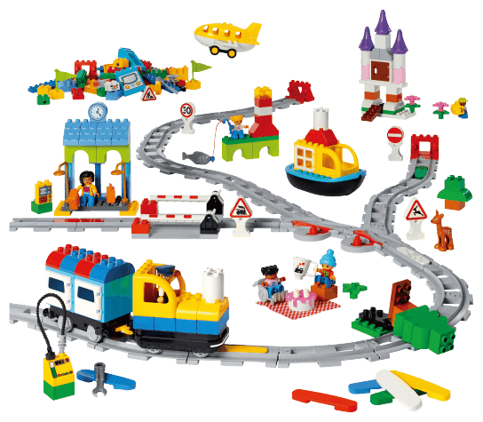 センサー搭載のトレインに、方向や停止の指示をしながらプログラミング的思考を育むセットです。