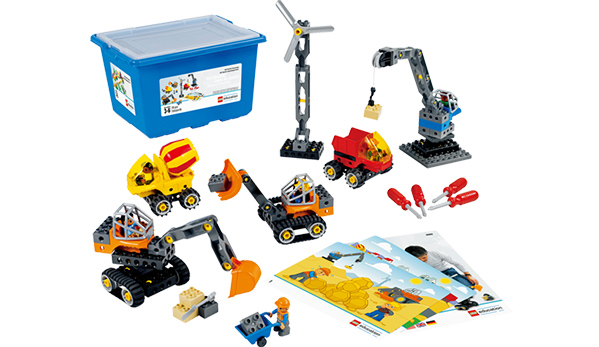 クレーンやショベルカーなど身の回りの乗り物や想像した乗り物を専用ドライバーで組み立てるセットです。