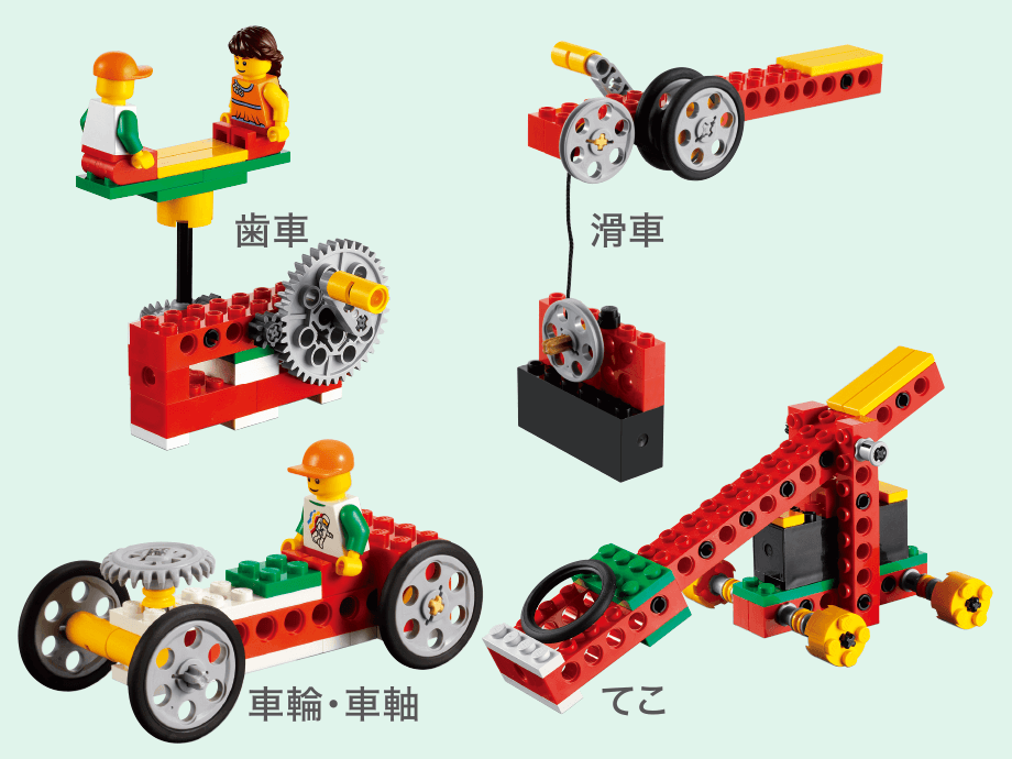 ギアを使ってメリーゴーランドを組み立てましょう。